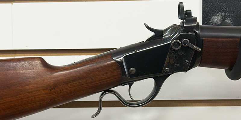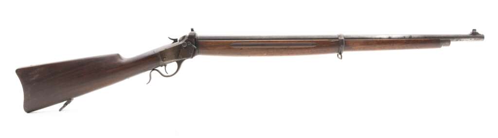 The Winchester Model 1885 in .22 Short, especially the popular Low Wall and Winder Musket variations, featured a strong falling-block action, designed as a robust and accurate single-shot rifle for training or sporting use, known for its solid construction and dependability, with variations in barrel shape (round, octagon) and finish.